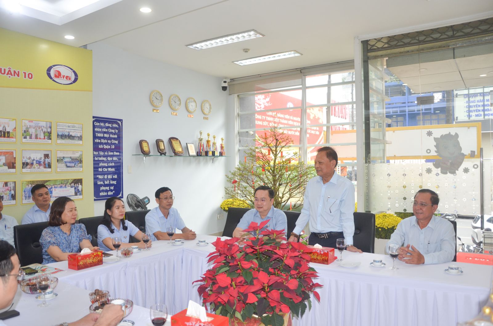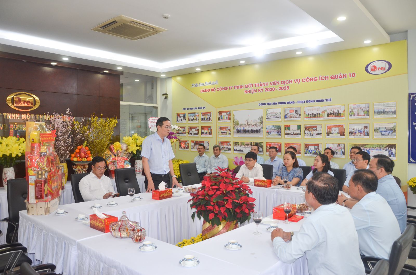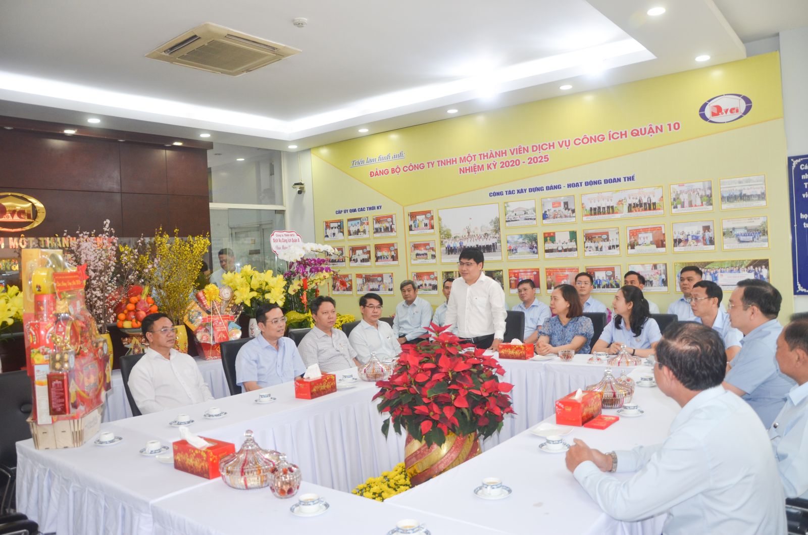 Phát biểu tại buổi gặp mặt, đồng chí Lê Văn Minh gửi lời chúc mừng năm mới an khang, hạnh phúc đến toàn thể cán bộ, công nhân viên Công ty; đồng thời ghi nhận, biểu dương tinh thần trách nhiệm, sự nỗ lực của đơn vị trong công tác phục vụ cộng đồng, góp phần giữ gìn mỹ quan đô thị, vệ sinh môi trường trên địa bàn và động viên nỗ lực vượt qua khó khăn hiện tại để chăm lo tốt cho công nhân lao động trong dịp Tết Nguyên Đán 2026 này.