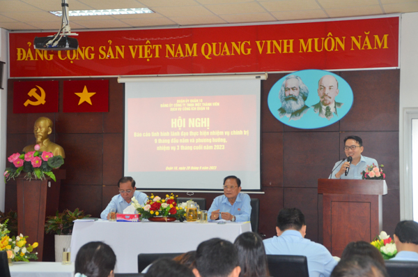 Ngày 28/9/2023, Đảng uỷ Cty TNHH MTV DVCI Q.10 tổ chức hội nghị sơ kết tình hình lãnh đạo thực hiện nhiệm vụ 9 tháng đầu năm 2023 nhằm đánh giá những mặt đạt được, mặt còn hạn chế, để từ đó đề ra phương hướng, nhiệm vụ chính trị cho hoạt động của Đảng ủy trong 3 tháng cuối năm 2023.